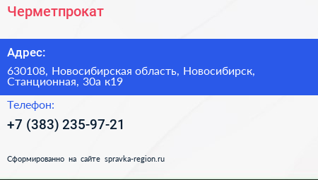 Черметпрокат по адресу 630108, Новосибирская область, Новосибирск, Станционная, 30а к19 в дальнейшем Организация, размещена в следующих категориях: