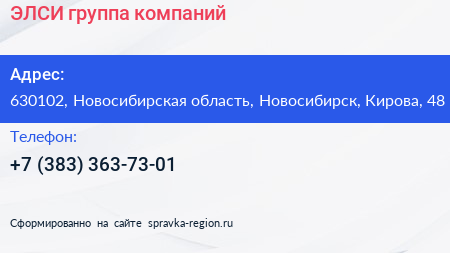 ЭЛСИ, группа компаний по адресу 630102, Новосибирская область, Новосибирск, Кирова, 48 в дальнейшем Организация, размещена в следующих категориях:
