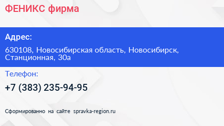 ФЕНИКС, фирма по адресу 630108, Новосибирская область, Новосибирск, Станционная, 30а в дальнейшем Организация, размещена в следующих категориях: