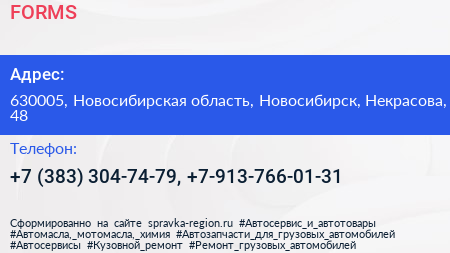 FORMS по адресу 630005, Новосибирская область, Новосибирск, Некрасова, 48 в дальнейшем Организация, размещена в следующих категориях: