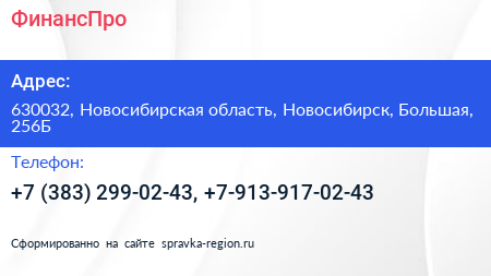 ФинансПро по адресу 630032, Новосибирская область, Новосибирск, Большая, 256Б в дальнейшем Организация, размещена в следующих категориях: