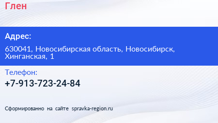 Глен по адресу 630041, Новосибирская область, Новосибирск, Хинганская, 1 в дальнейшем Организация, размещена в следующих категориях: