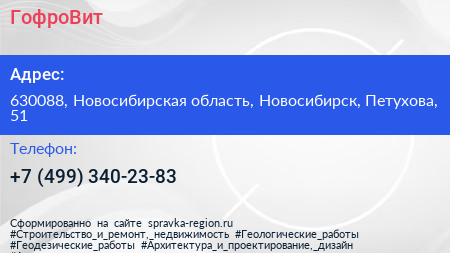 ГофроВит по адресу 630088, Новосибирская область, Новосибирск, Петухова, 51 в дальнейшем Организация, размещена в следующих категориях: