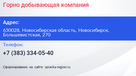 Горно-добывающая компания по адресу 630028, Новосибирская область, Новосибирск, Большевистская, 270 в дальнейшем Организация, размещена в следующих категориях: