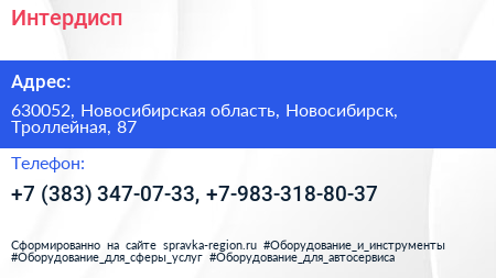 Интердисп по адресу 630052, Новосибирская область, Новосибирск, Троллейная, 87 в дальнейшем Организация, размещена в следующих категориях: