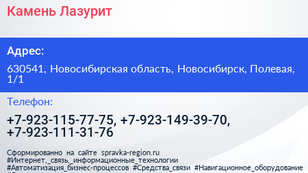 Камень-Лазурит по адресу 630541, Новосибирская область, Новосибирск, Полевая, 1/1 в дальнейшем Организация, размещена в следующих категориях: