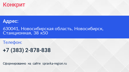 Конкрит по адресу 630041, Новосибирская область, Новосибирск, Станционная, 38 к50 в дальнейшем Организация, размещена в следующих категориях: