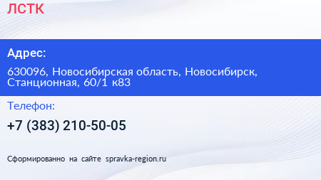 ЛСТК по адресу 630096, Новосибирская область, Новосибирск, Станционная, 60/1 к83 в дальнейшем Организация, размещена в следующих категориях: