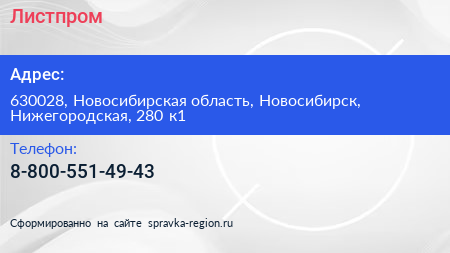 Листпром по адресу 630028, Новосибирская область, Новосибирск, Нижегородская, 280 к1 в дальнейшем Организация, размещена в следующих категориях: