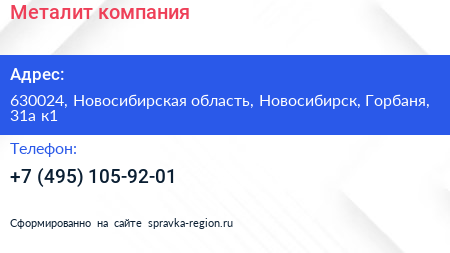 Металит, компания по адресу 630024, Новосибирская область, Новосибирск, Горбаня, 31а к1 в дальнейшем Организация, размещена в следующих категориях: