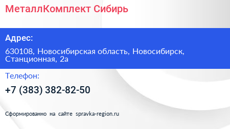 МеталлКомплект-Сибирь по адресу 630108, Новосибирская область, Новосибирск, Станционная, 2а в дальнейшем Организация, размещена в следующих категориях: