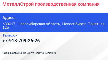 МеталлСтрой, производственная компания по адресу 630017, Новосибирская область, Новосибирск, Покатная, 126 в дальнейшем Организация, размещена в следующих категориях: