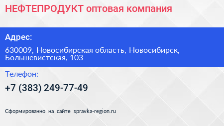 НЕФТЕПРОДУКТ, оптовая компания по адресу 630009, Новосибирская область, Новосибирск, Большевистская, 103 в дальнейшем Организация, размещена в следующих категориях: