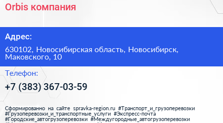 Orbis, компания по адресу 630102, Новосибирская область, Новосибирск, Маковского, 10 в дальнейшем Организация, размещена в следующих категориях: