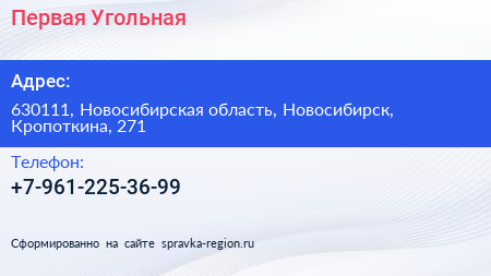 Первая Угольная по адресу 630111, Новосибирская область, Новосибирск, Кропоткина, 271 в дальнейшем Организация, размещена в следующих категориях: