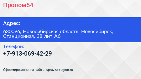 Пролом54 по адресу 630096, Новосибирская область, Новосибирск, Станционная, 38 лит А6 в дальнейшем Организация, размещена в следующих категориях: