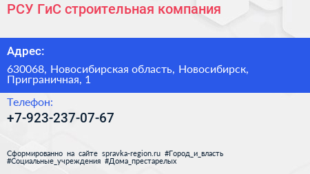 РСУ-ГиС, строительная компания по адресу 630068, Новосибирская область, Новосибирск, Приграничная, 1 в дальнейшем Организация, размещена в следующих категориях: