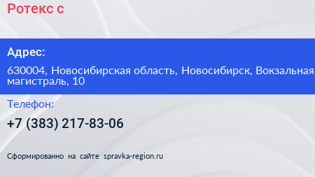 Ротекс-с по адресу 630004, Новосибирская область, Новосибирск, Вокзальная магистраль, 10 в дальнейшем Организация, размещена в следующих категориях: