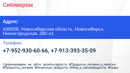 Сибнихром по адресу 630028, Новосибирская область, Новосибирск, Нижегородская, 280 к1 в дальнейшем Организация, размещена в следующих категориях: