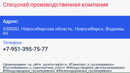 Спецснаб, производственная компания по адресу 630020, Новосибирская область, Новосибирск, Фадеева, 66 в дальнейшем Организация, размещена в следующих категориях: