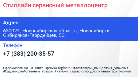 Стиллайн, сервисный металлоцентр по адресу 630024, Новосибирская область, Новосибирск, Сибиряков-Гвардейцев, 50 в дальнейшем Организация, размещена в следующих категориях: