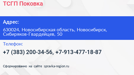 ТСГП Поковка по адресу 630024, Новосибирская область, Новосибирск, Сибиряков-Гвардейцев, 50 в дальнейшем Организация, размещена в следующих категориях: