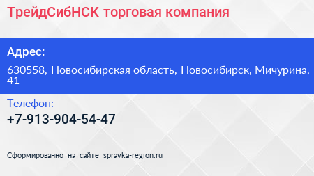 ТрейдСибНСК, торговая компания по адресу 630558, Новосибирская область, Новосибирск, Мичурина, 41 в дальнейшем Организация, размещена в следующих категориях: