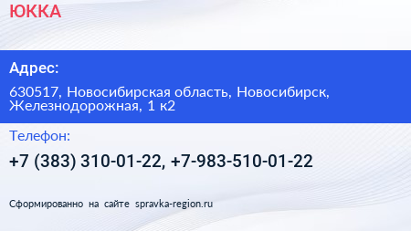 ЮККА по адресу 630517, Новосибирская область, Новосибирск, Железнодорожная, 1 к2 в дальнейшем Организация, размещена в следующих категориях: