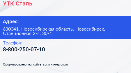 УТК-Сталь по адресу 630041, Новосибирская область, Новосибирск, Станционная 2-я, 30/1 в дальнейшем Организация, размещена в следующих категориях: