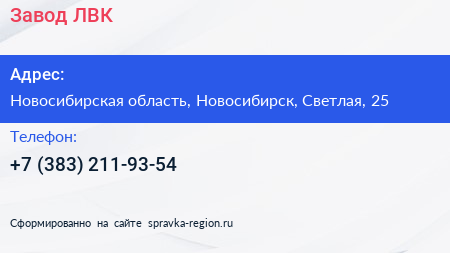 Завод ЛВК по адресу Новосибирская область, Новосибирск, Светлая, 25 в дальнейшем Организация, размещена в следующих категориях: