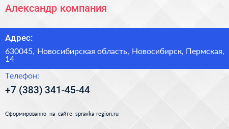 Александр, компания по адресу 630045, Новосибирская область, Новосибирск, Пермская, 14 в дальнейшем Организация, размещена в следующих категориях:
