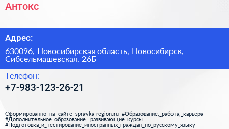 Антокс по адресу 630096, Новосибирская область, Новосибирск, Сибсельмашевская, 26Б в дальнейшем Организация, размещена в следующих категориях:
