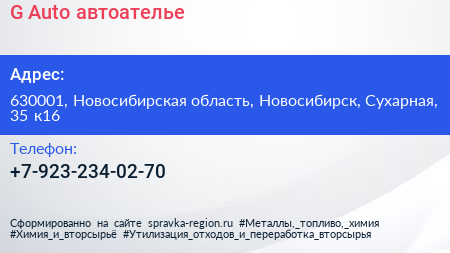 G-Auto, автоателье по адресу 630001, Новосибирская область, Новосибирск, Сухарная, 35 к16 в дальнейшем Организация, размещена в следующих категориях: