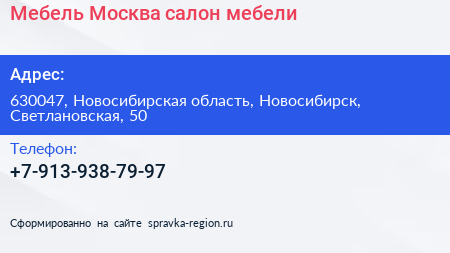 Мебель Москва, салон мебели по адресу 630047, Новосибирская область, Новосибирск, Светлановская, 50 в дальнейшем Организация, размещена в следующих категориях: