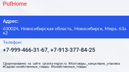 PufHome по адресу 630024, Новосибирская область, Новосибирск, Мира, 63а к2 в дальнейшем Организация, размещена в следующих категориях: