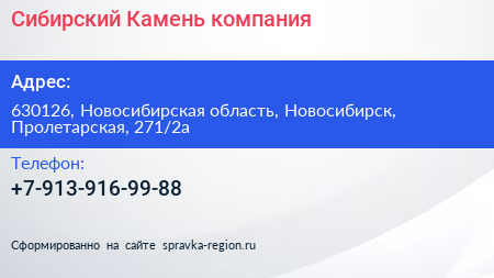 Сибирский Камень, компания по адресу 630126, Новосибирская область, Новосибирск, Пролетарская, 271/2а в дальнейшем Организация, размещена в следующих категориях: