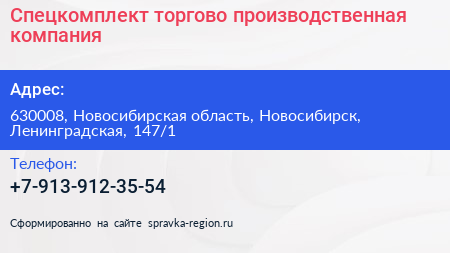 Спецкомплект, торгово-производственная компания по адресу 630008, Новосибирская область, Новосибирск, Ленинградская, 147/1 в дальнейшем Организация, размещена в следующих категориях: