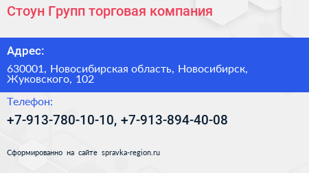 Стоун Групп, торговая компания по адресу 630001, Новосибирская область, Новосибирск, Жуковского, 102 в дальнейшем Организация, размещена в следующих категориях: