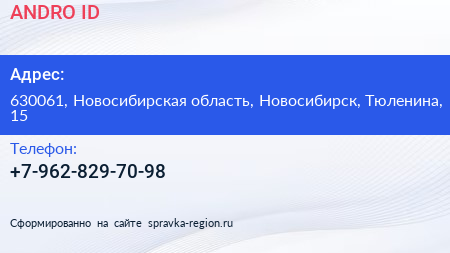 ANDRO-ID по адресу 630061, Новосибирская область, Новосибирск, Тюленина, 15 в дальнейшем Организация, размещена в следующих категориях: