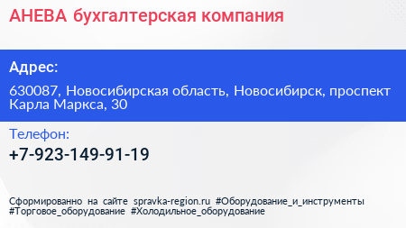 АНЕВА, бухгалтерская компания по адресу 630087, Новосибирская область, Новосибирск, проспект Карла Маркса, 30 в дальнейшем Организация, размещена в следующих категориях: