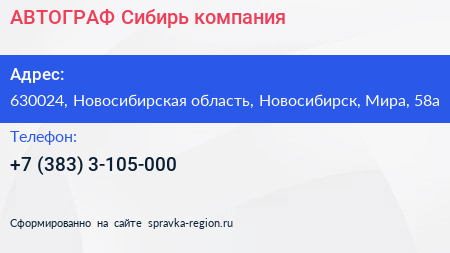 АВТОГРАФ-Сибирь, компания по адресу 630024, Новосибирская область, Новосибирск, Мира, 58а в дальнейшем Организация, размещена в следующих категориях: