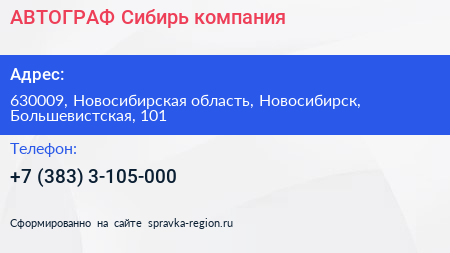 АВТОГРАФ-Сибирь, компания по адресу 630009, Новосибирская область, Новосибирск, Большевистская, 101 в дальнейшем Организация, размещена в следующих категориях: