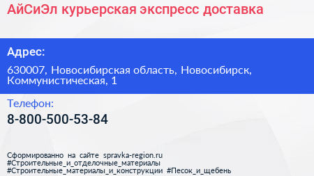 АйСиЭл, курьерская экспресс-доставка по адресу 630007, Новосибирская область, Новосибирск, Коммунистическая, 1 в дальнейшем Организация, размещена в следующих категориях: