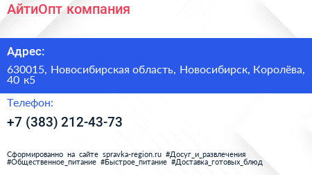 АйтиОпт, компания по адресу 630015, Новосибирская область, Новосибирск, Королёва, 40 к5 в дальнейшем Организация, размещена в следующих категориях: