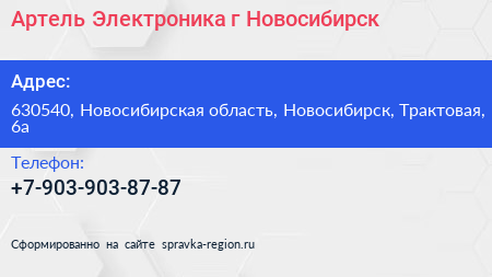 Артель Электроника, г. Новосибирск по адресу 630540, Новосибирская область, Новосибирск, Трактовая, 6а в дальнейшем Организация, размещена в следующих категориях:
