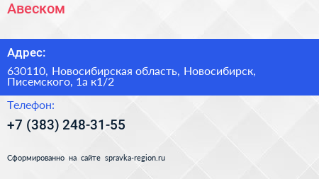 Авеском по адресу 630110, Новосибирская область, Новосибирск, Писемского, 1а к1/2 в дальнейшем Организация, размещена в следующих категориях: