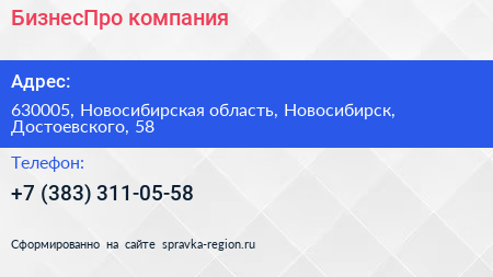 БизнесПро, компания по адресу 630005, Новосибирская область, Новосибирск, Достоевского, 58 в дальнейшем Организация, размещена в следующих категориях: