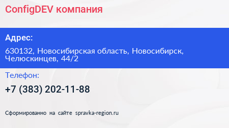ConfigDEV, компания по адресу 630132, Новосибирская область, Новосибирск, Челюскинцев, 44/2 в дальнейшем Организация, размещена в следующих категориях: