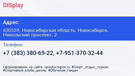 DISplay по адресу 630559, Новосибирская область, Новосибирск, Никольский проспект, 2 в дальнейшем Организация, размещена в следующих категориях:
