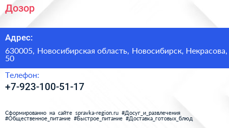 Дозор по адресу 630005, Новосибирская область, Новосибирск, Некрасова, 50 в дальнейшем Организация, размещена в следующих категориях: